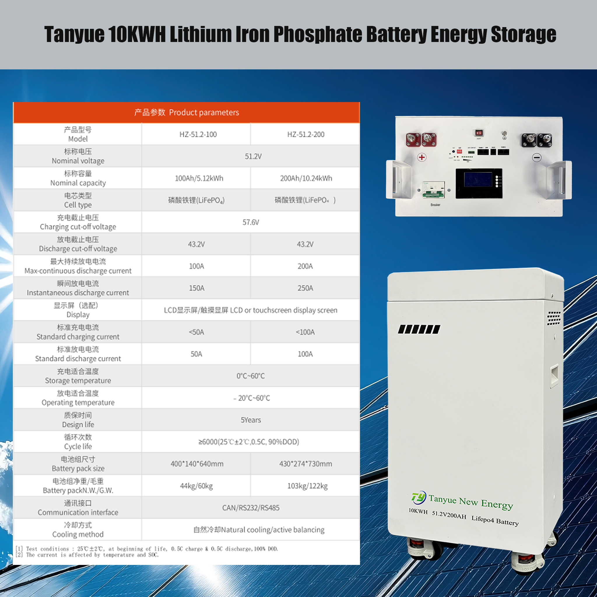 [1] Test conditions: 25℃ ±2℃, at beginning of life, 0.5C charge & 0.5C discharge, 100% DOD.